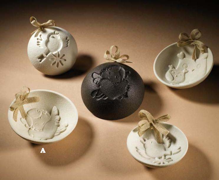 Ciotolina (A) Lineasette con angelo in grès color latte, predisposta per essere appesa, dimensioni cm 9x9x3.5h, Designer Flavio Cavalli.